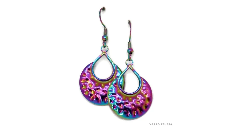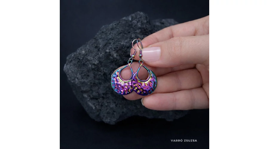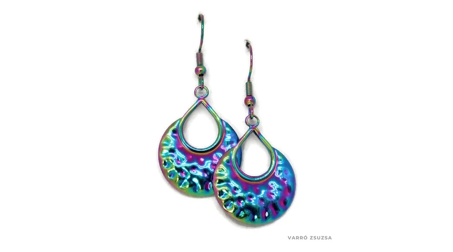 Ez a fülbevaló nagyon szép színfolt lehetne a füledben. A felülete minden mozdulatnál másként csillan. És talán pont az a kis plusz, amitől egy kicsit bátrabb, játékosabb, leszel.