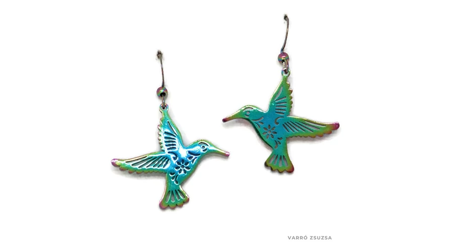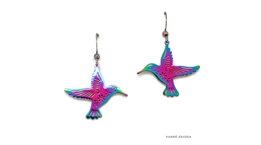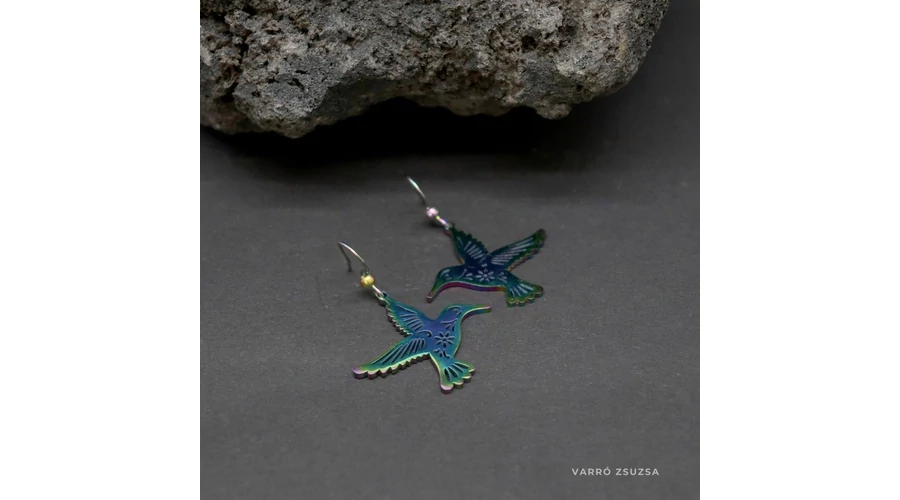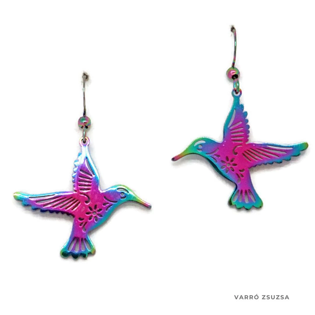 Szivárvány acél fülbevaló – Madár Anyag: rozsdamentes acél Felület: Ionbevonatú (IP), ami egy tartós, modern felületkezelési eljárás.